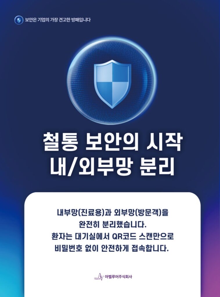 원내부에서 사용하는 망과 환자용 외부망을 격리해야합니다.